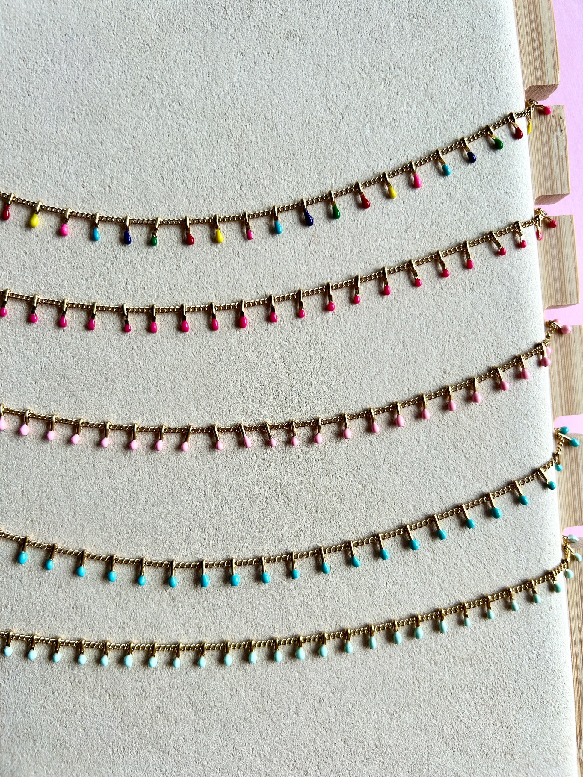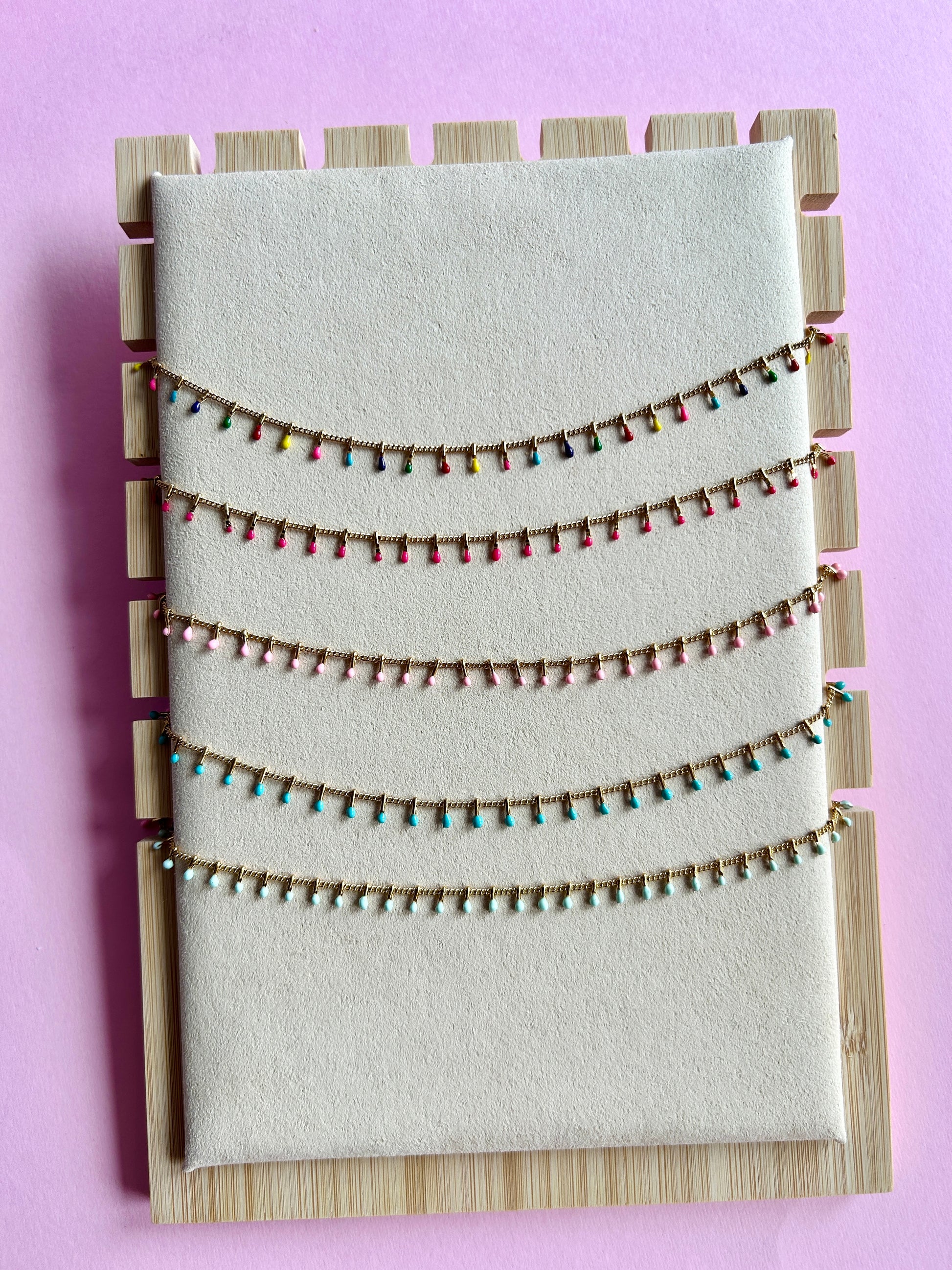 Catena con piccole decorazioni colorate a fiammifero! Disponibile in 5 colori diversi.