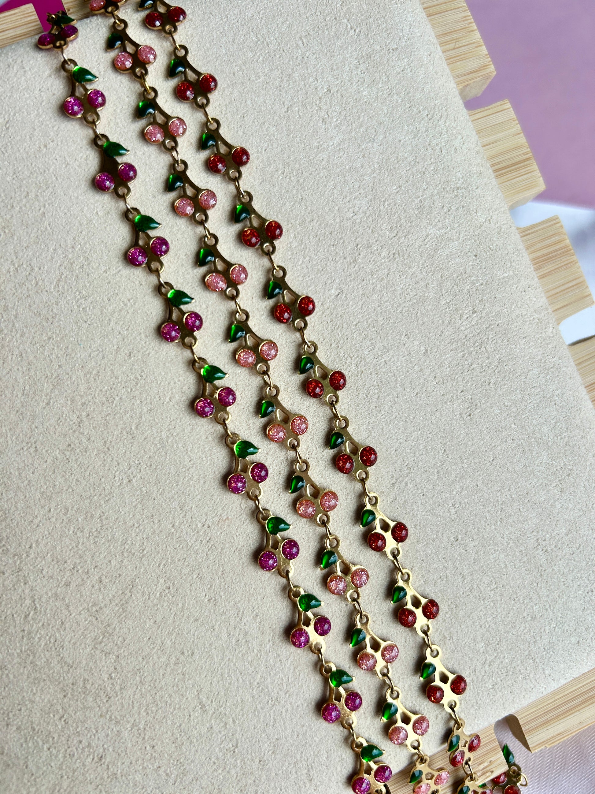 Meravigliosa collana con tante ciliegie colorate. Disponibili in 3 colori.