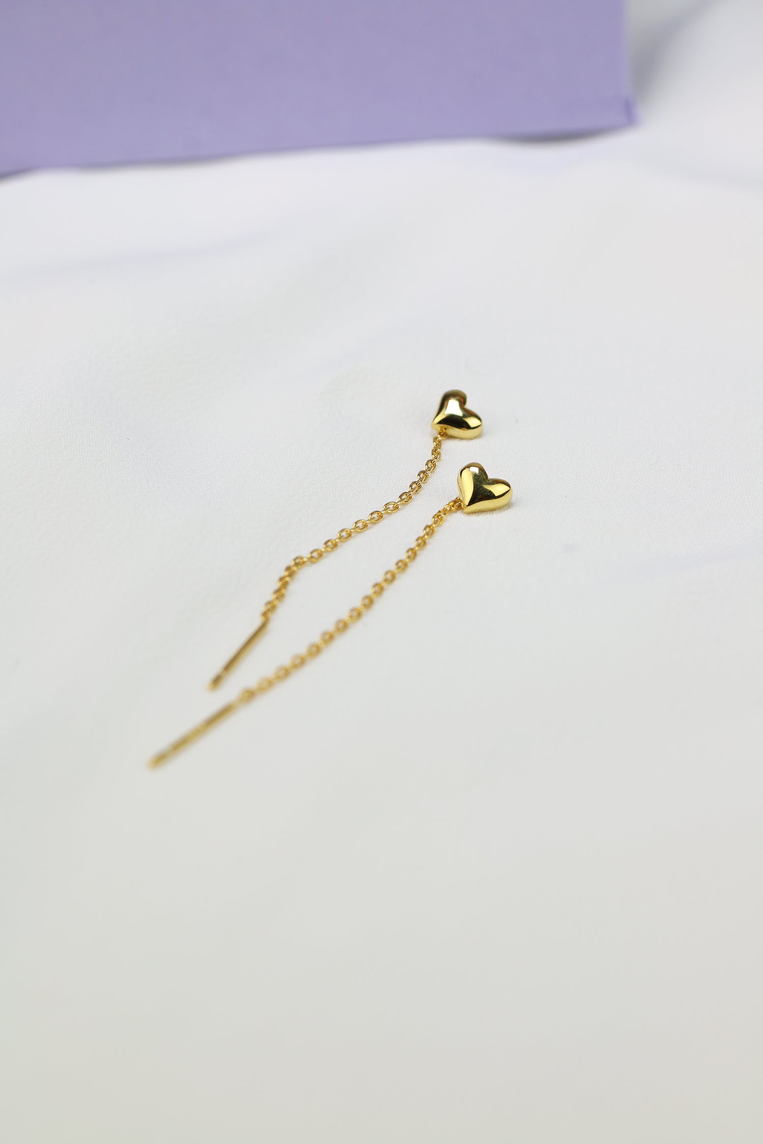 Orecchini sali e scendi con un cuoricino che si ferma sul lobo insieme ad una elegante catenella pendente. Sono in argento 925 placcato oro. Fanno parte della collezione Self Love Club e sono l'accessorio perfetto per celebrare l'amore per te stessa!