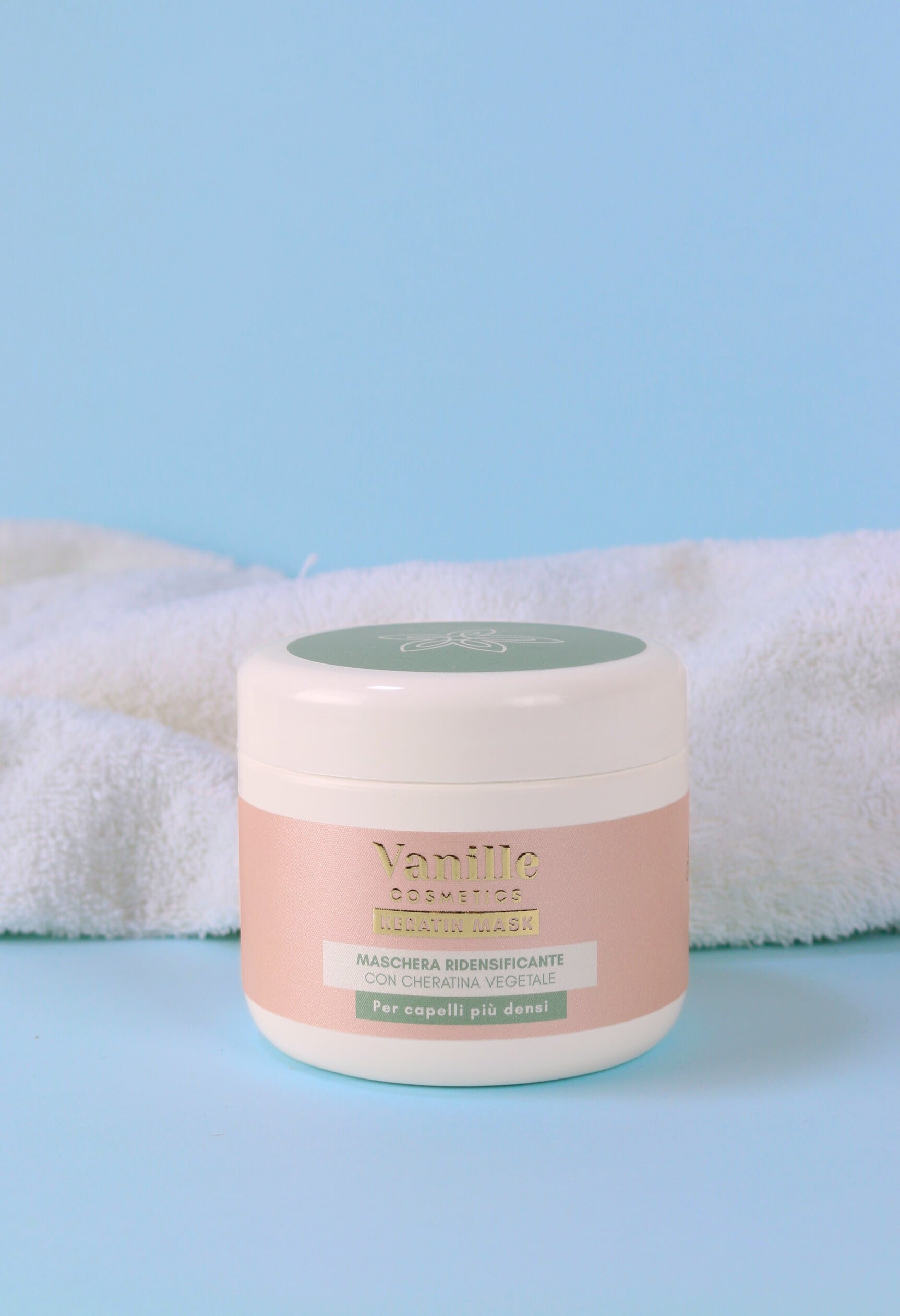 La nostra Maschera Capelli alla Cheratina è un trattamento intensivo progettato per riparare, rinforzare e ravvivare i capelli danneggiati. La cheratina, una proteina fondamentale per la struttura capillare, si combina con ingredienti nutrienti come l'olio di cocco, olio di avocado e pantenolo, per creare una maschera che dona nuova vita ai tuoi capelli, lasciandoli morbidi, setosi e visibilmente più sani.