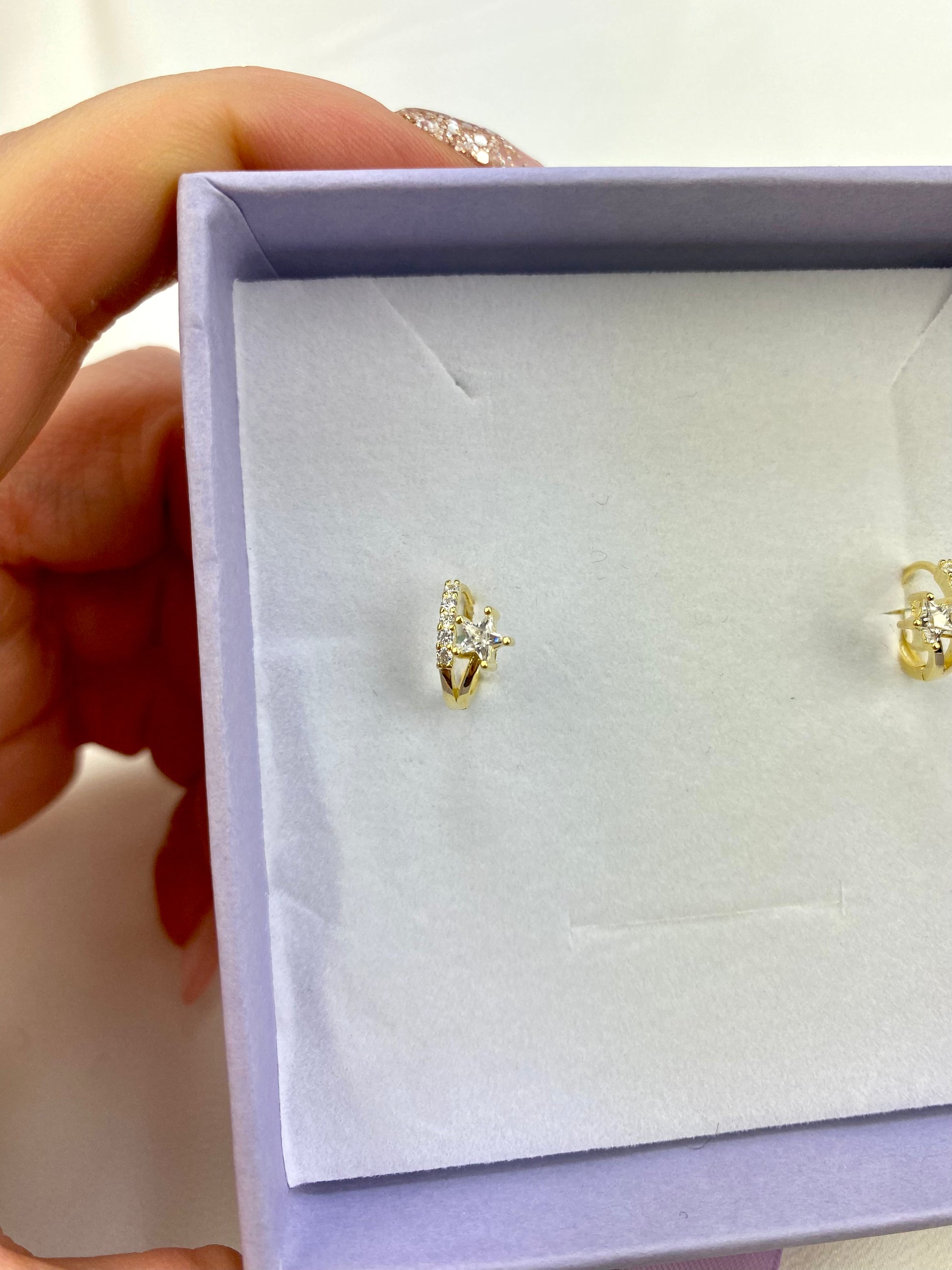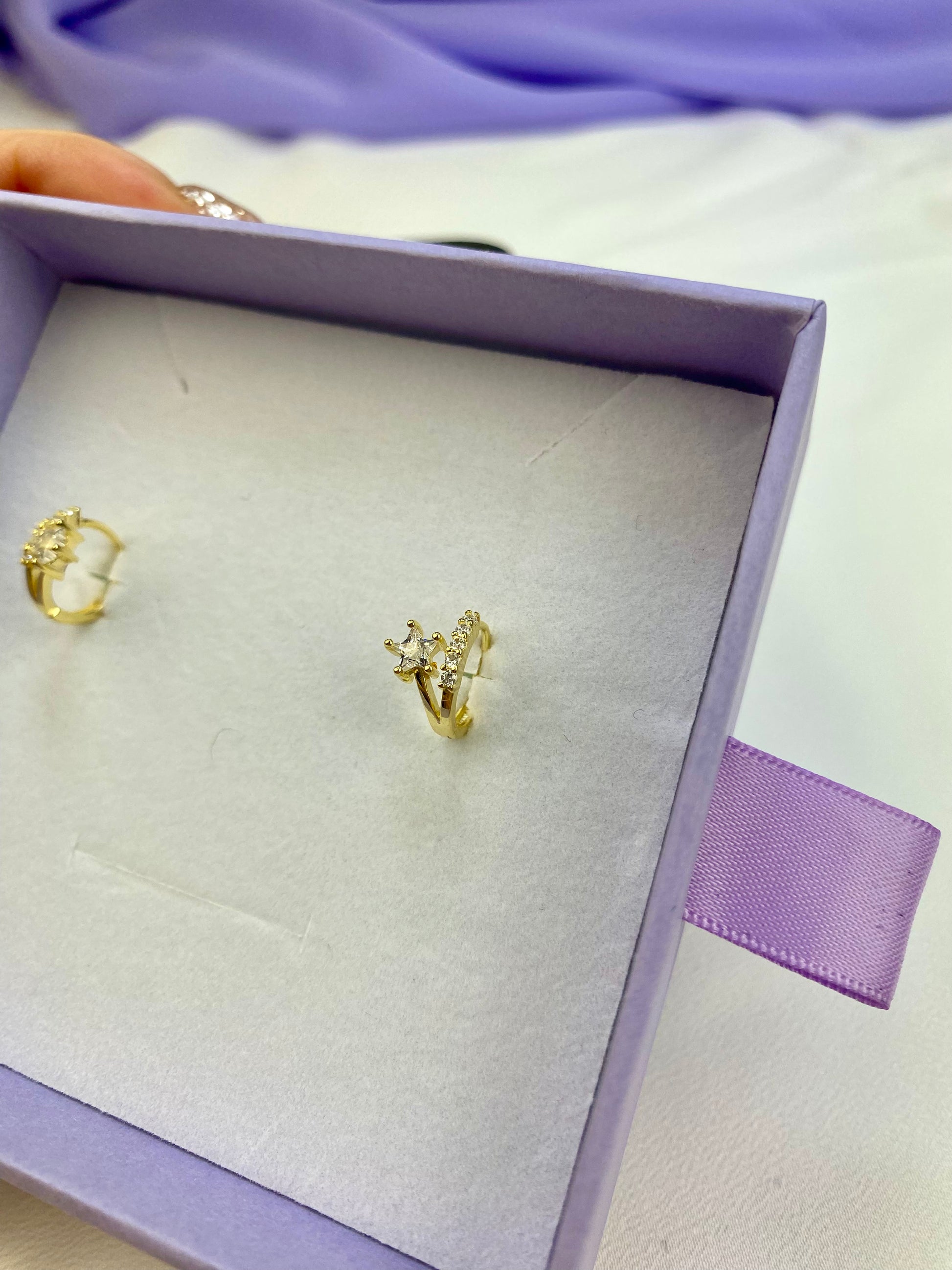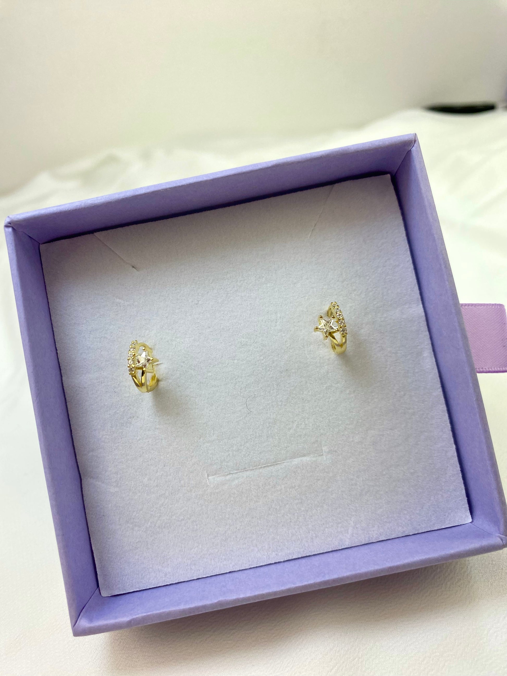 Orecchini a cerchietto con zirconi incastonati e decorato da uno zircone bianco a forma di stella super luminoso. Sono in argento 925 placcato oro. Fanno parte della collezione Goodnight e sono l'accessorio perfetto per celebrare i sogni che si avverano!