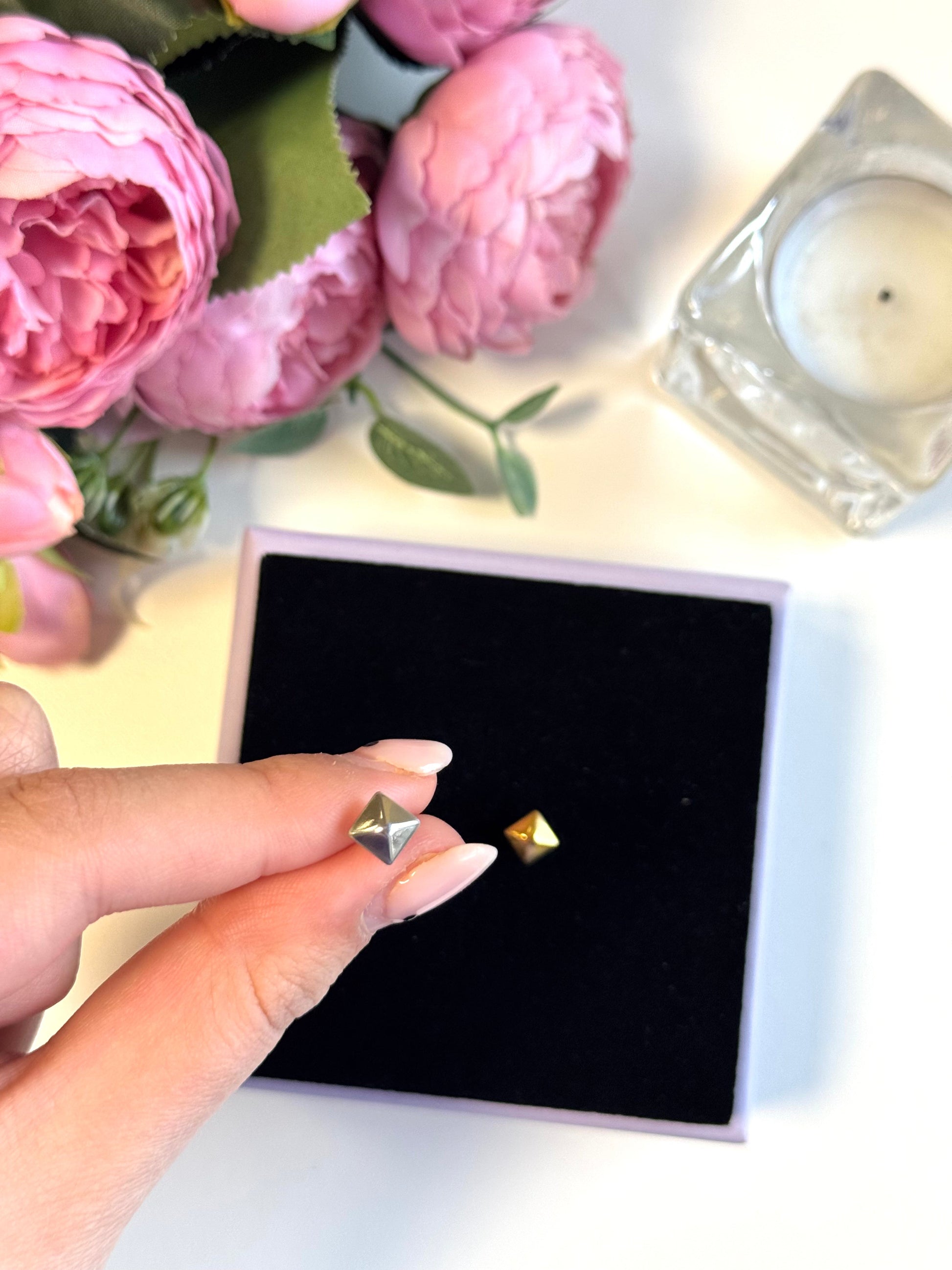 Orecchini Giza disponibili in gold e silver.