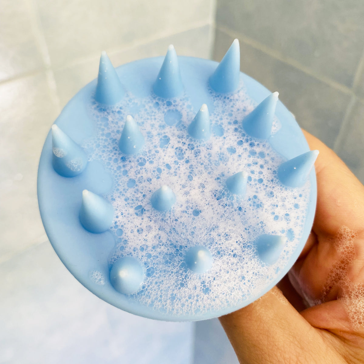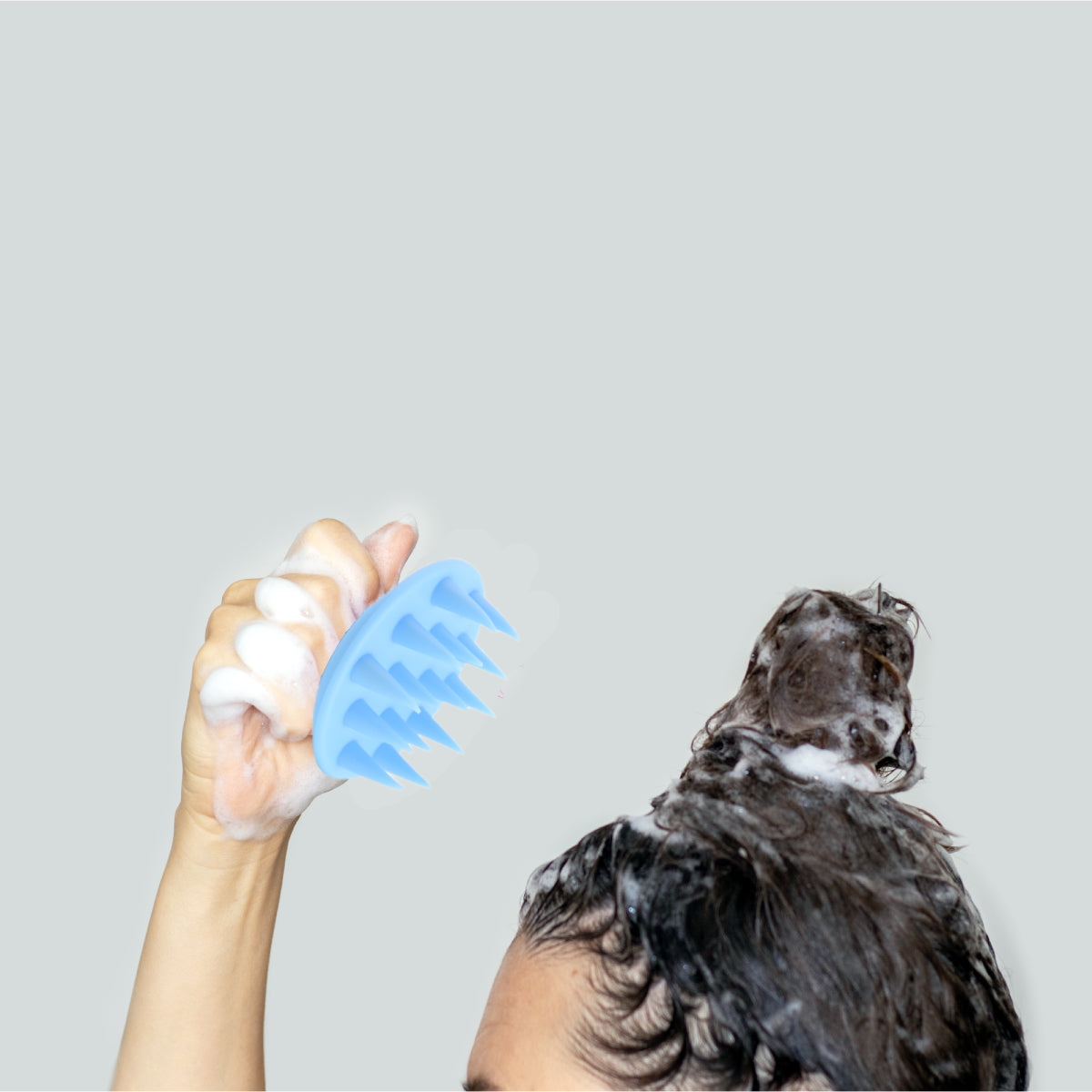 Spazzola per il cuoio capelluto in morbido silicone per esfoliare e massaggiare delicatamente la cute. Il massaggio stimola la circolazione per favorire la crescita di capelli sani.